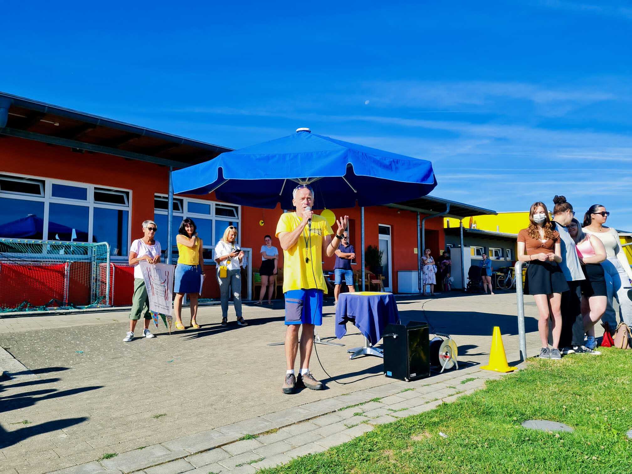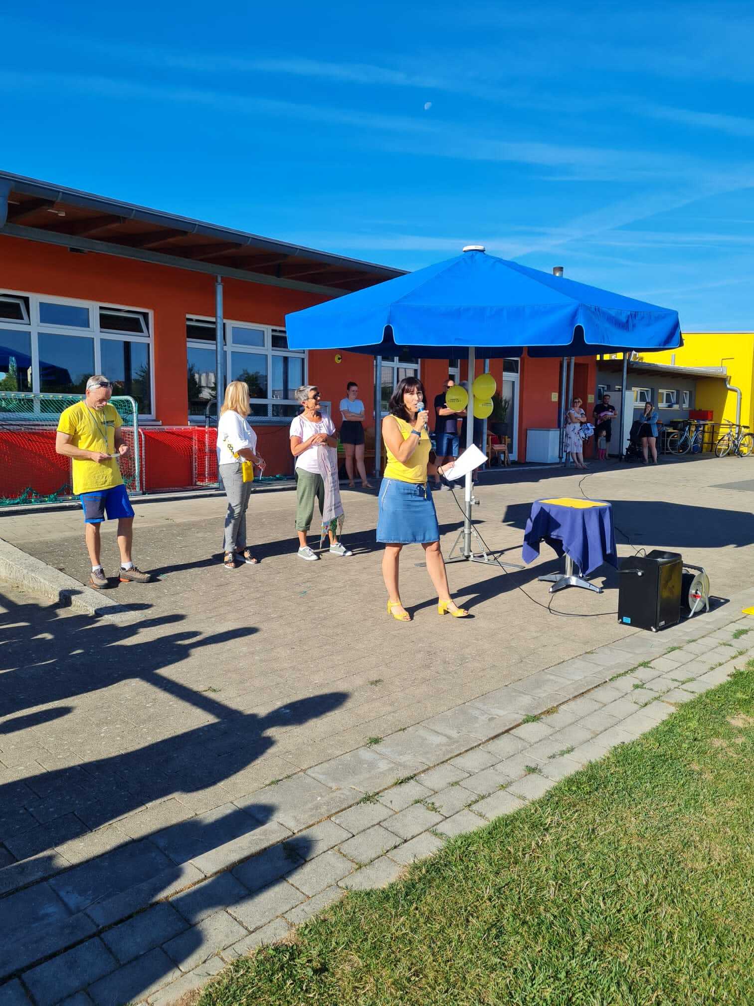 Die erste Bürgermeisterin von Markt Erlbach, Frau Dr. Birgit Kreß, war gekommen und überbrachte ihre guten Wünsche und eine Spende. Auch die Vorsitzende des Fördervereins, Frau Ingrid Stotz feuerte die Schüler an.