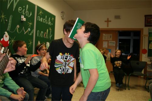 Kurz vor Weihnachten stand für die Kinder der Klasse 4b etwas ganz Besonderes auf dem Programm: Sie verbrachten eine Nacht im Schulhaus. Da die Kinder schon Wochen vorher eifrig Detektivgeschichten lasen und gemeinsam mit Kommissar Kugelblitz auf Spurensuche gingen, sollte auch in dieser Nacht das Lesen ganz im Vordergrund stehen. Die letzten Kapitel von "Kugelblitz als Weihnachtsmann" von Ursel Scheffler begeisterten die Kinder auch in dieser Nacht. Neben Spielen rund um das Thema Buch, einer Leserallye, schönen Basteleien und einer leckeren Weihnachtsbäckerei vergnügten sich die Kinder auch bei vorgetragenen Musikstücken ihrer Klassenkameraden. "Ganz schön aufregend!", fanden die Viertklässler und schliefen erst sehr spät ein.
